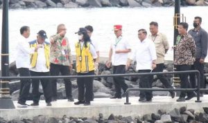 Dilokasi pantai Malalayang juga Presiden meninjau penataan kawasan pantai Malalayang secara bersamaan hendak diresmikan.