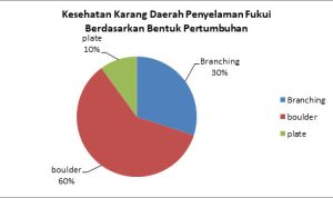 Bentuk pertumbuhan dari karang yang diamati pada daerah penyelaman Fukui adalah jenis Branching atau bercabang adalah 6 atau 30%, jenis Boulder atau bongkahan 12 atau 60% dan karang jenis Plate adalah 2 atau 10%. Dalam pengamatan Jenis pertumbuhan yang terbanyak pada daerah penyelaman Fukui adalah bentuk pertumbuhan Branching atau bercabang yaitu sebesar 50%.