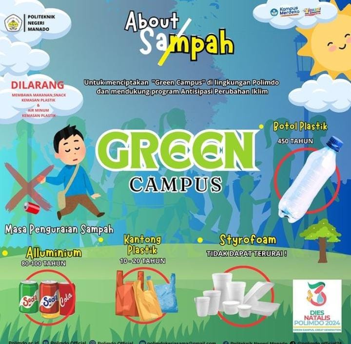Dalam kegiatan ini pula Direktur Polimdo Dra. Mareyke Alelo, MBA, melaunching program “Green Campus” Polimdo. Dimana dalam program ini tidak lagi diperkenankan bagu seluruh mahasiswa, dosen, pegawai, dan lainnya dalam lingkungan Polimdo untuk membawa makanan snack kemasan plastik, dan air minum kemasan plastik.