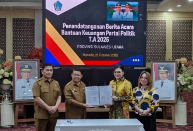 Penyerahan bantuan keuangan Parpol tahun 2025 ini, ditandai dengan penandatanganan berita acara serah terima.