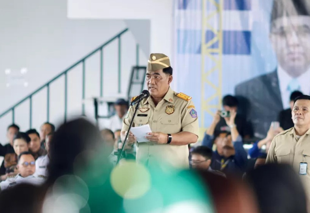 Membacakan sambutan Menteri Ketenagakerjaan RI, Gubernur Yulius menyoroti angka kecelakaan kerja nasional yang masih cukup tinggi.