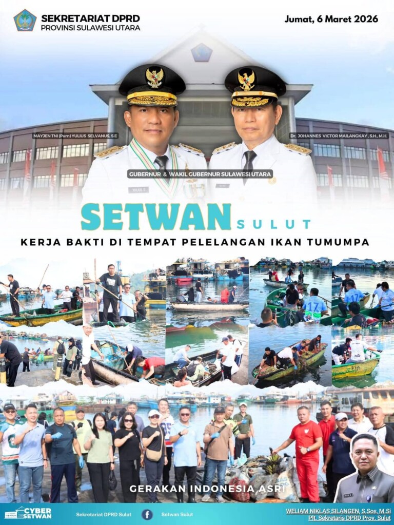 Manado, Bunaken.co.id — Komitmen menjaga kebersihan lingkungan pesisir kembali ditunjukkan oleh jajaran Sekretariat DPRD Provinsi Sulawesi Utara melalui kegiatan kerja bakti (korve) di kawasan Tempat Pelelangan Ikan (TPI) Tumumpa, Kota Manado, Jumat (6/3/2026).