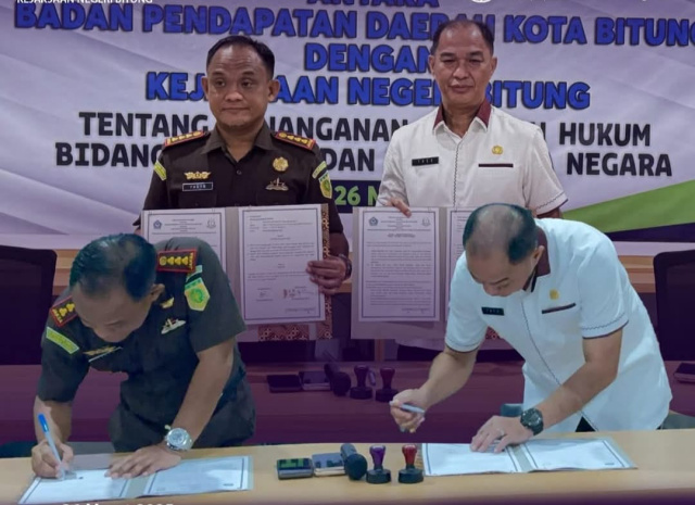 Penandatangan oleh Kepala Kejaksaan Negeri Bitung, Dr. Yadyn, SH, MH dan Kepala Bapenda Kota Bitung, Theo Rorong, SE, Kasi Datun Natalia J.P Runkat, SH, beserta jajaran Kejaksaan Negeri Bitung dan Badan Pendapatan Daerah (Bapenda) Kota Bitung.