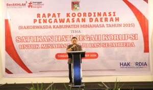 Tondano. Bunaken.co.id – Bupati Minahasa Robby Dondokambey SSi, MAP, bersama Wakil Bupati Vanda Sarundajang SS, resmi membuka kegiatan Rapat Koordinasi Pengawasan Daerah (RAKORWASDA) yang diselenggarakan oleh Inspektorat Daerah Kabupaten Minahasa di Hotel Yama Resort, Kamis (4/12/25).