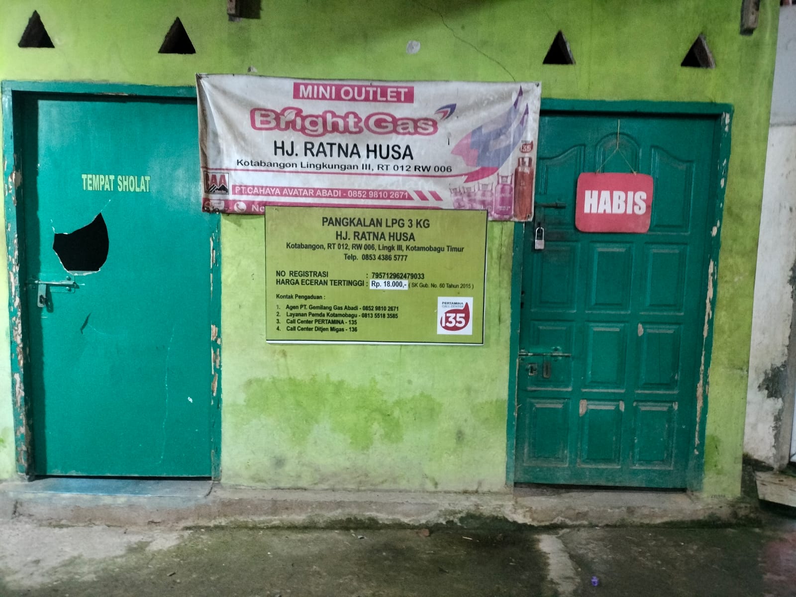 Pangkalan berdiri dari Agen PT Gemilang Gas Abadi bernomor Registrasi 795712962479033 atas nama HJ.Ratna Husa kurun 5 tahun terkahir ini berdiri tanpa gangguan meski pihak Pemkot Kotamobagu yang dipimpin oleh Walikota Kotamobagu Weny Gaib begitu getol melakukan sidak di sejumlah pangkalan, namun pangkalan berada dalam rumah makan Babussalam ini sepertinya kebal hukum dan tidak pernah dijamah oleh Pemkot Kotamobagu.