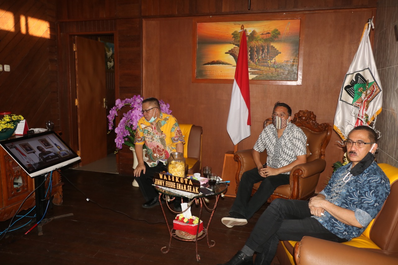 Walikota Tomohon Bersama Jajaran Iktu VidCon Bersama Mendagri