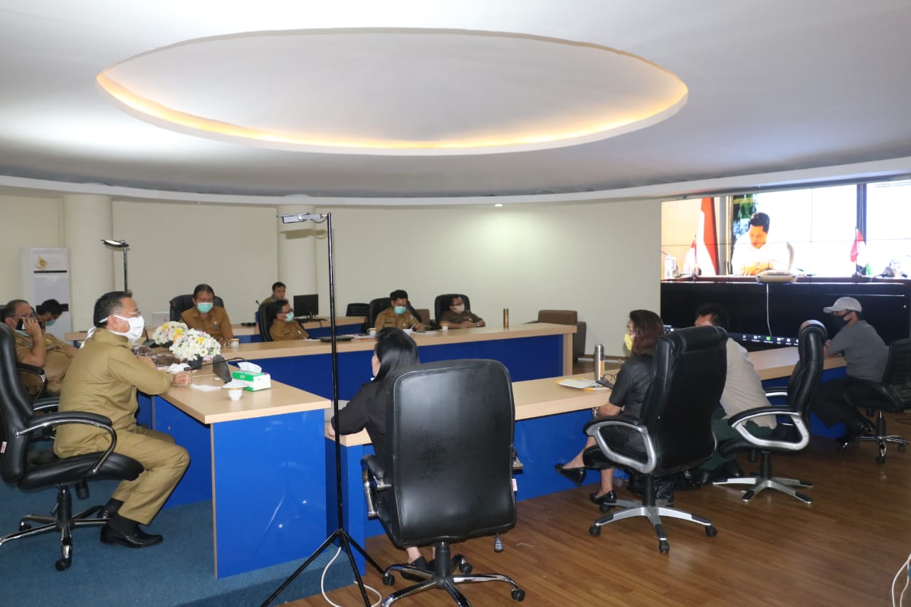 Walikota Tomohon Bersama Jajaran Iktu VidCon Bersama Mendagri